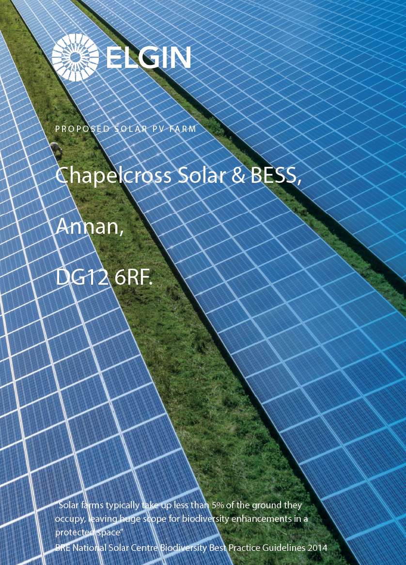 Elgin Energy EsCo Ltd is seeking to develop a Solar PV and Battery Storage System at Lands owned in and around Chapelcross, Annan DG12 6RF.